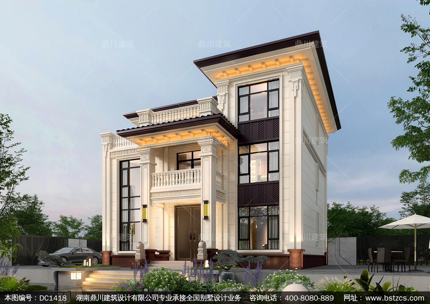 大氣新中式三層別墅設(shè)計(jì)圖紙及效果圖_農(nóng)村自建房設(shè)計(jì),鼎川建筑