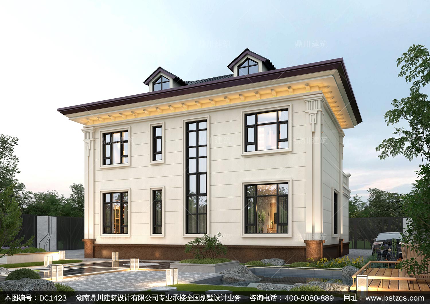 大氣新中式二層別墅設計圖紙及效果圖_農村自建房設計,鼎川建筑