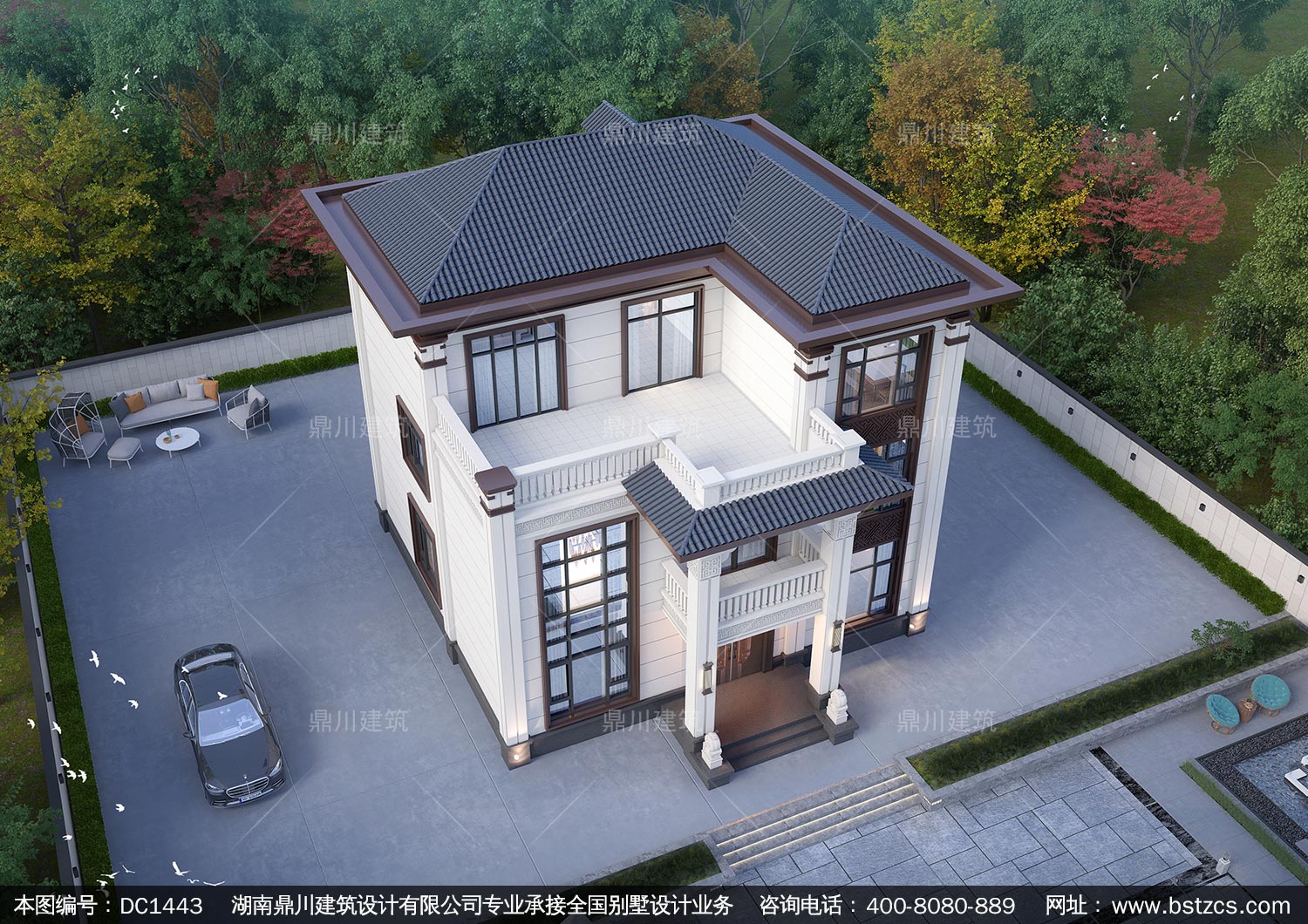 大氣新中式三層別墅設計圖紙及效果圖_農村自建房設計,鼎川建筑