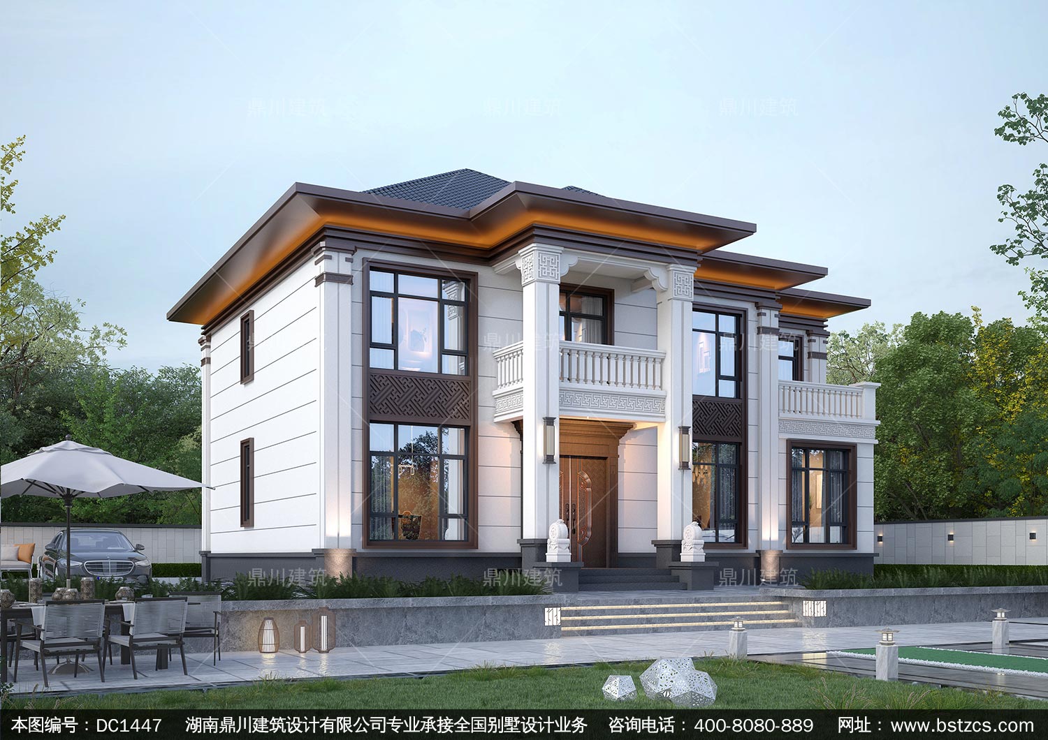 大氣新中式二層別墅設計圖紙及效果圖_農(nóng)村自建房設計,鼎川建筑