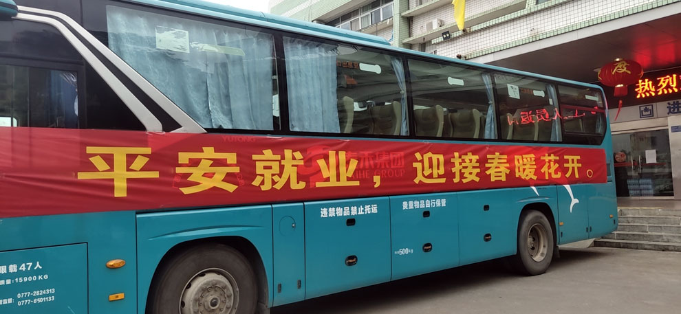 2月25日,為進(jìn)一步解決人員到崗不足問題,除科室人員利用休息時(shí)間支援一線外,在總裁王咸車的統(tǒng)籌安排下,又組織人力資源部和分廠員工5人招聘小組前往廣西橫縣、靈山等人口大縣開專車接員工返回和現(xiàn)場(chǎng)招聘新員工工作。